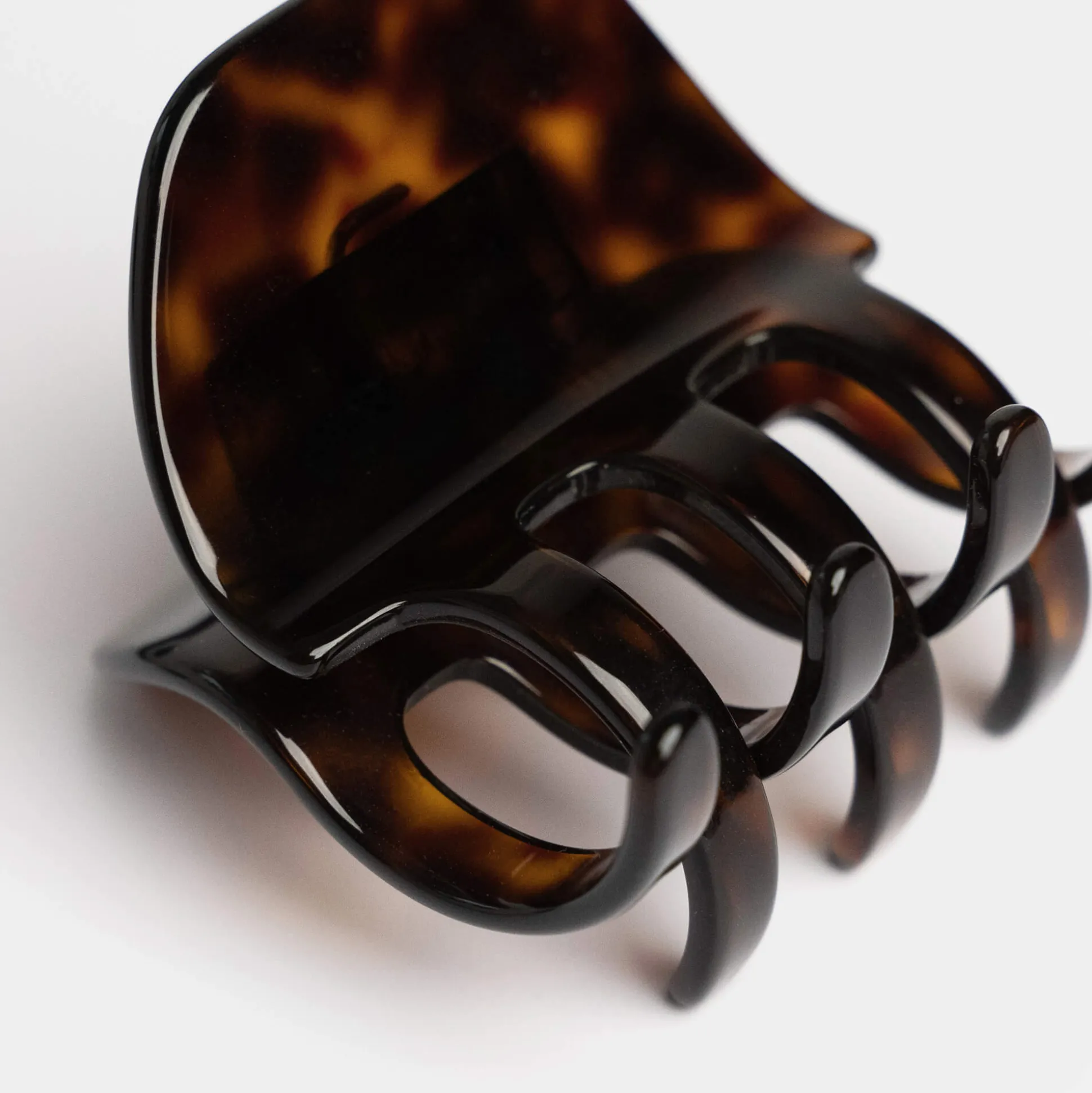 Une pince à cheveux en acétate de cellulose, un matériau alternatif au plastique et made in France, pour coiffer aussi bien les cheveux fins mi-longs à longs.